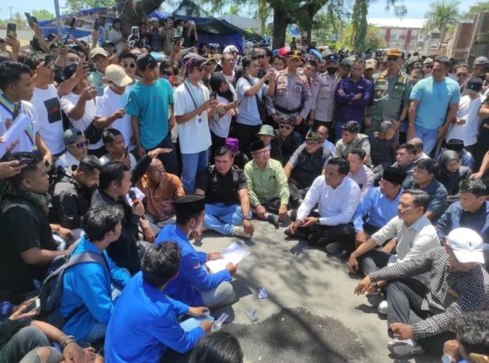 Massa Aksi terlihat diterima oleh sejumlah Anggota DPRD, Wakil Bupati Lombok Utara, serta mendapat pengawalan dari Polres Lombok Utara didukung TNI dan Satpol PP.