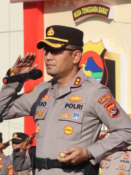 Kapolres Lombok Tengah, Eko Yusmiarto, saat memimpin Apel Kontingensi Aman Nusa I Rinjani 2026 di Lapangan Apel Mapolres Loteng, Senin (6/4/2026), menekankan pentingnya kepekaan anggota dalam membaca situasi.