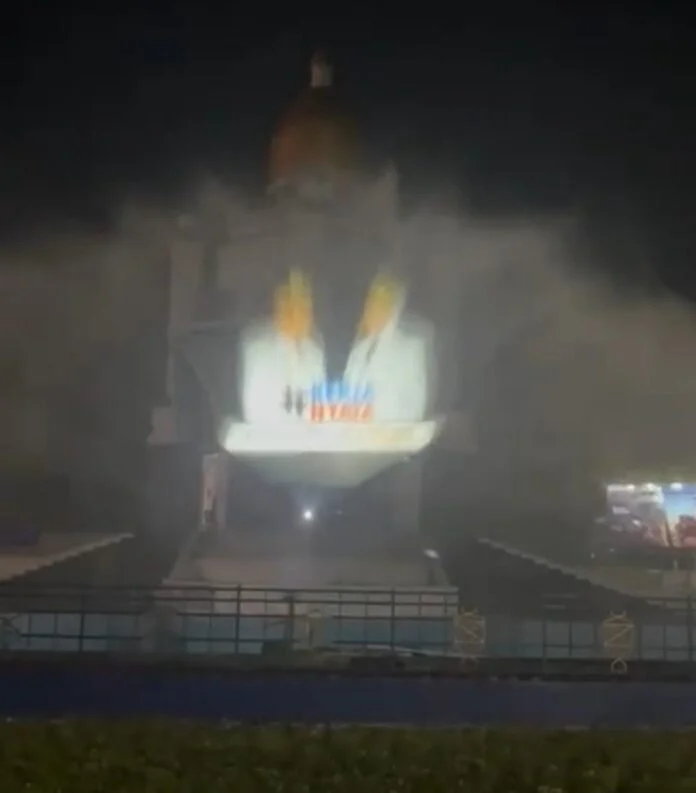 “Water Screen” Air Mancur Menari Bundaran GMS Lobar Diuji Coba, Disebut Pertama di NTB