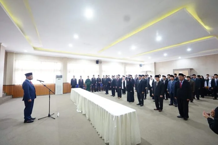 Mataram (globalfmlombok.com) – Kepala Kantor Wilayah Kementerian Agama Provinsi Nusa Tenggara Barat (NTB), H. Zamroni Aziz, SH., MH., secara resmi melantik dan mengambil sumpah jabatan terhadap 38 Pejabat Fungsional di lingkungan Kanwil Kemenag NTB. Prosesi pelantikan yang berlangsung khidmat ini digelar di Aula Utama Lantai 4 Kantor Wilayah Kemenag NTB pada Senin, 5 Januari 2026.