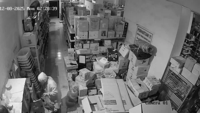 Setelah masuk ke gudang, terduga pelaku kemudian masuk ke lantai tiga menggunakan lift barang toko tersebut.