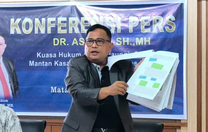 Pernyataan tersebut disampaikan Asmuni dalam konferensi pers di kantornya, Kecamatan Sekarbela, Kota Mataram, Kamis (12/2/2026). Ia menjelaskan, kliennya terpaksa menjalankan perintah tersebut demi mempertahankan jabatan.