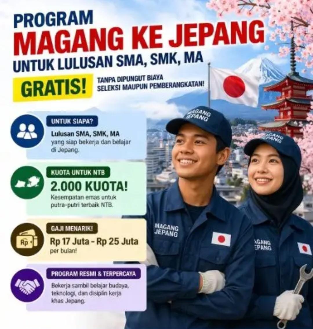 Disnakertrans NTB Buka 2.000 Kuota Magang ke Jepang, Pendaftaran Dipastikan Gratis
