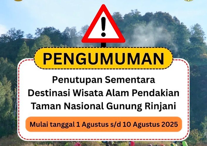 Balai Taman Nasional Gunung Rinjani (BTNGR) menutup seluruh jalur pendakian Gunung Rinjani di Lombok, Nusa Tenggara Barat mulai 1 Agustus 2025.