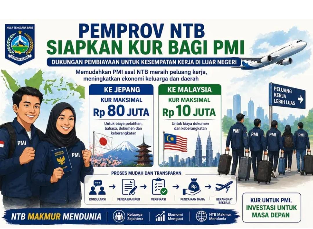 Mataram (globalfmlombok.com) – Pemerintah Provinsi Nusa Tenggara Barat (NTB) menyiapkan Kredit Usaha Rakyat (KUR) bagi Pekerja Migran Indonesia (PMI) yang akan berangkat ke Jepang dan Malaysia. Pinjaman ini akan melalui Bank NTB Syariah dengan kisaran kredit Rp40-80 juta bagi PMI tujuan Jepang, dan Rp6-10 juta untuk PMI tujuan Malaysia.