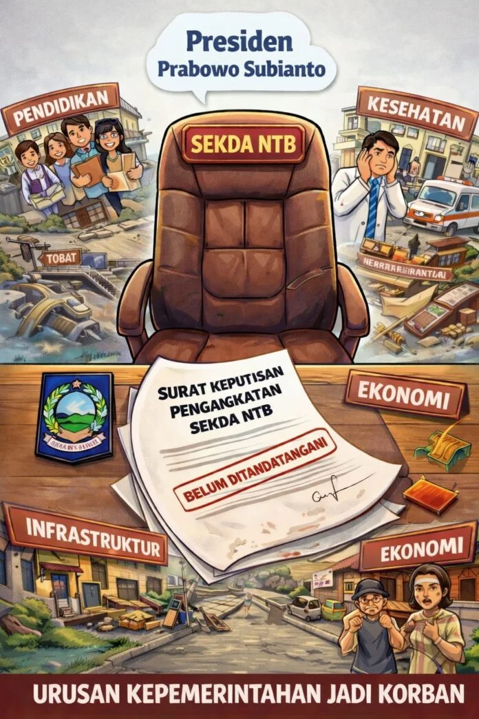 Mataram (globalfmlombok.com) – Penetapan Sekretaris Daerah (Sekda) NTB definitif hingga kini belum juga dilakukan. Pemilihan satu nama dari tiga calon yang telah lolos seleksi masih tertahan di meja Sekretaris Kabinet (Seskab) karena belum ditandatangani Presiden Prabowo Subianto.