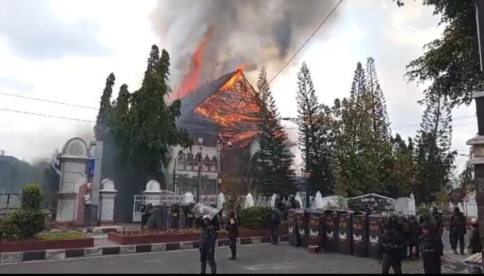 Mataram (globalfmlombok.com) – Gedung DPRD NTB dibakar massa aksi demo dari aliansi mahasiswa dan masyarakat NTB, Sabtu (30/8/2025).